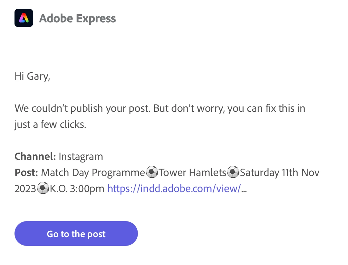 Cannot publish to Instagram, but Twitter & FB are fine. Very flakey and have to refresh browser every now and again to restore some functions. Created one design some weeks back and successfully posted to Twitter, FB & InstaGram... but then it suddenly flagged up an alert that the Twitter channel stipulated the height of my design was above its limitation. So I changed the size to suit all and it worked. But now out of the Blue it's not publishing to InstaGram. It seems to send fine, but then I get an email alert advising it couldn't publish to my InstaGram account - offering a quick fix and giving me a link back to Express. I take that route and it offers me a button link to 'Refresh InstaGram Token'. I do that and get taken to a Facebook/InstaGram window and after verifying my log-in it advises it has successfully connected to InstaGram... and it shows that channel is connected. BUT when I try again and again, refreshing and restarting the browser it still doesn't send and sends me the same email alert message.