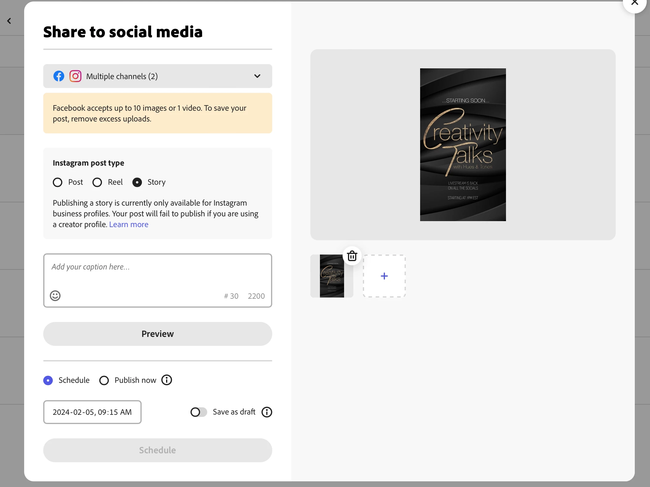 I keep getting this error when I try to use the scheduler. Whether the graphic/video is right from Express, or downloaded and then try to upload it. I have 1 png attached here (which was created using Adobe Express originally) , which would appear to be within the limits of Facebook as outlined. I can't get past this error to schedule and have to post through another medium. I have tried on different devices and browsers. How can I better upload my images?