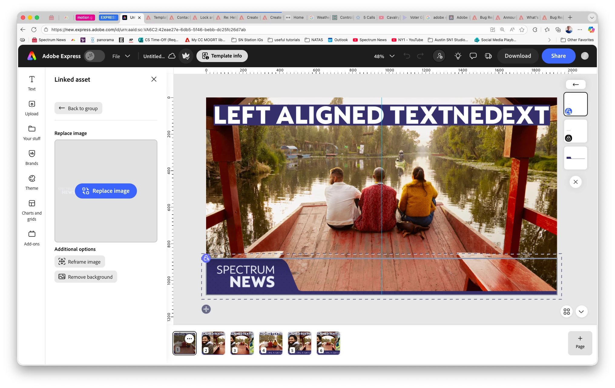 Something changed over the weekend with the replace feature for images, when I try to replace our Spectrum News logo in this template, the text box gets positioned smaller and moved down very far out of frame. you can see in the second and third photo when I replaced the image just how far down the canvas it moves after I replace the image. even though they are sized the same. we are having similar issuers in a static template for Instagram where the logos that are sized the same appear to double in size when replaced .