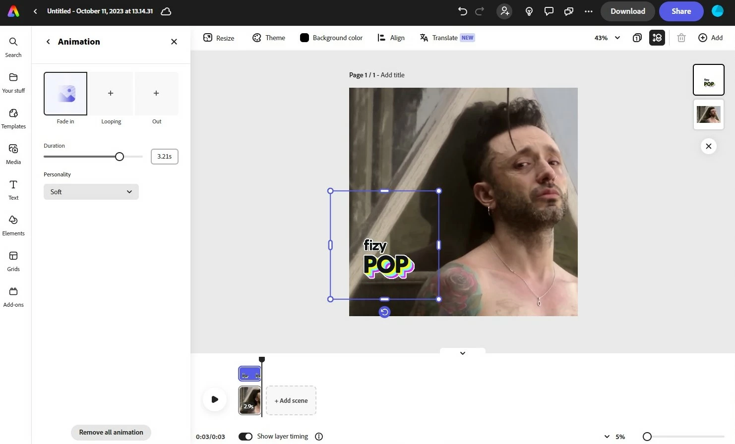 Ddefault328506937vk8xlParticipantForum|Forum|2 years agoOctober 11, 2023Resize an objectForum|Forum|2 years agoOctober 11, 20230 replies118 viewsHi. I add png as new layer to mp4. i can move it but i cant enlarge it. Could you plz tell me how to resize the "fizy pop" png ?Quick Actions