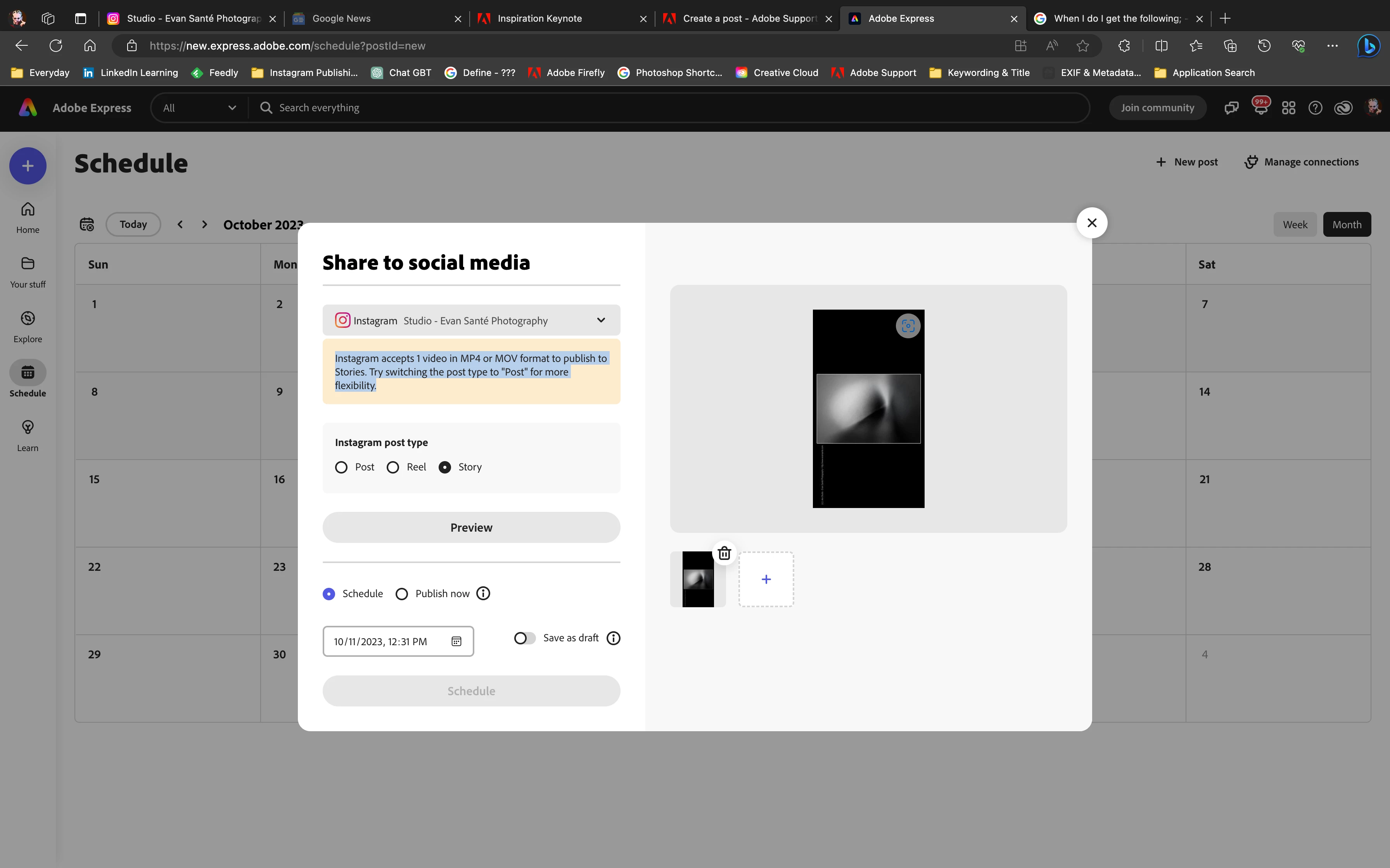 I was really excited to learn at Max that you can now post Instagram Reels and Stories from Express. However when I try to create an Instagram Story using a static JPG image I get the following;