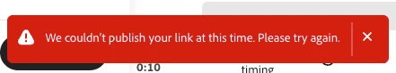 Whenever I try to go to Share > View-only Link, I receive this error message in red (below). I've tried refreshing my browser, clearing my cache, logging out/back in, restarting my computer, ect. Nothing works and I'm unable to generate a share link. I work with a large organization so the review link process is crucial to my workflow. Any tips?