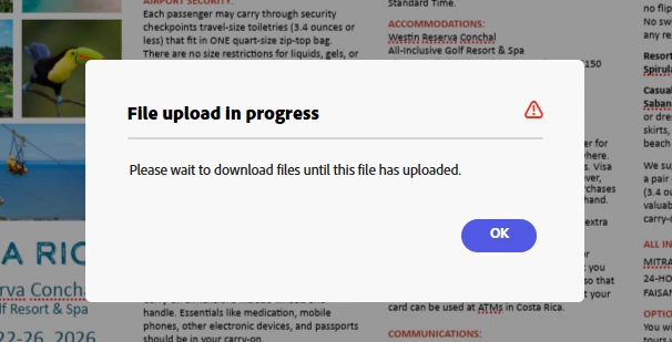 Two weeks ago I downloaded this project as a PDF for Print, but last week i made changes to the project and now I can't download it in any format. Between these two occasions, I changed some text and images. I tried downloading only 1 of the 2 pages, but that didn't work either. I've been using Express for 2 months. I'm working on a desktop computer with Windows and Chrome. See Download pop-up below, and File Upload in Progress, which never uploads below that. Thanks for any help! MK