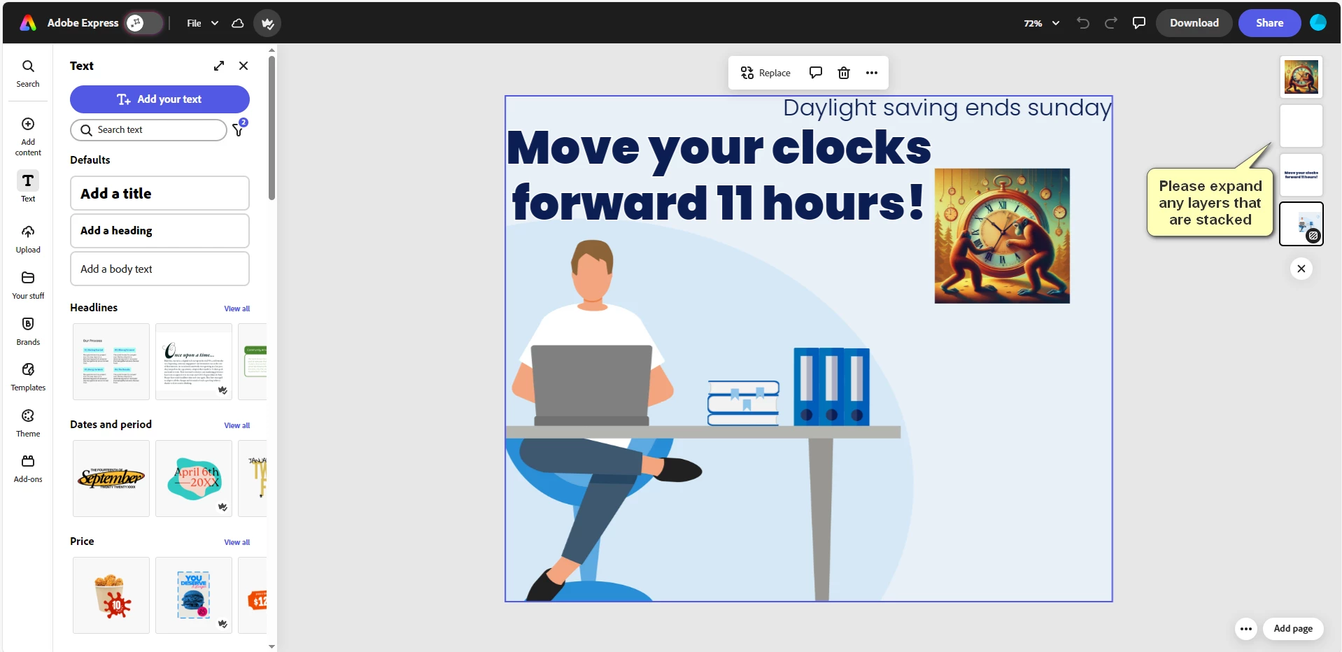 I've created a new template in adobe express today, and a couple of hours later my text is invisible.