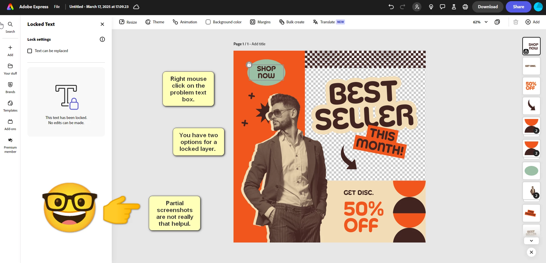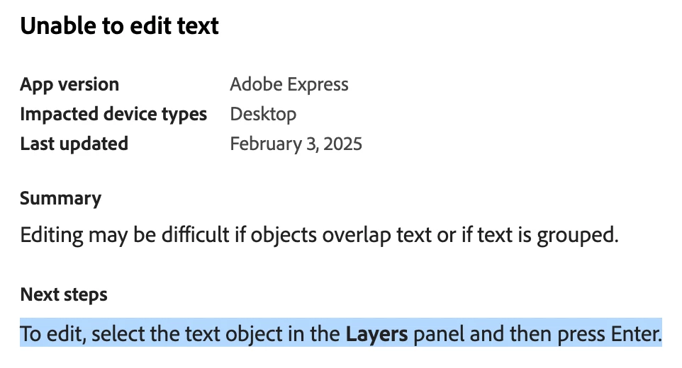 I can only edit what is available on the left panel but cannot rewrite actual text.