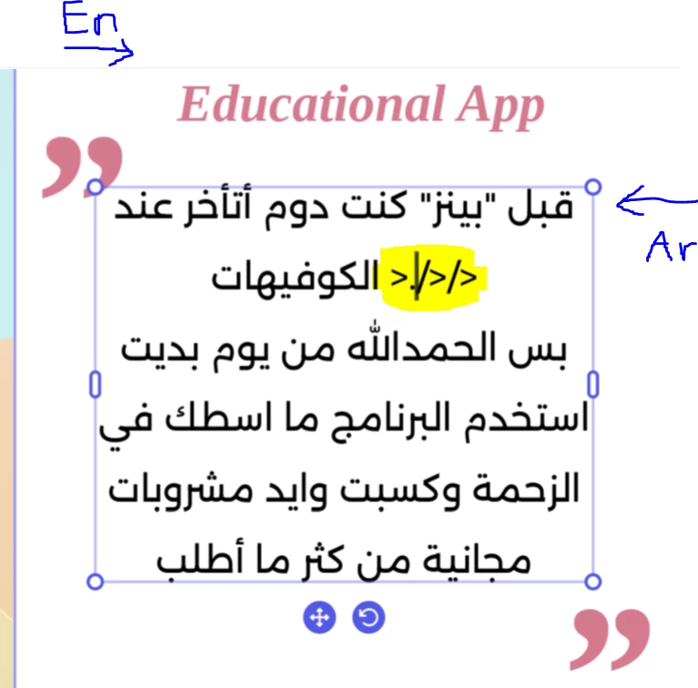 I'm on paid subscription on Adobe Express, and I am loving it. The only problem I am facing is when I have a text in Arabic, it messes up my text oreintation (should be from right to left) since it is Egnlish based. Languages such Arabic, Hebrew, and Farsirequire Right-to-Left (RTL) orientation. Please add this feature and I wouldnt stop recommending this amazing service.