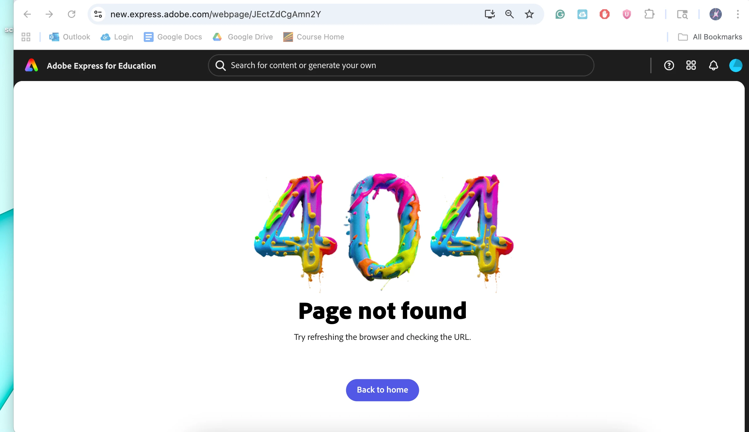 Hi everyone, I need some help. I had a portfolio website on Adobe Express that was working fine up until about 18 days ago. Now, whenever I click on the link, I get a “404 Page Not Found” error. I’ve tried refreshing the page multiple times, but it still won’t load.