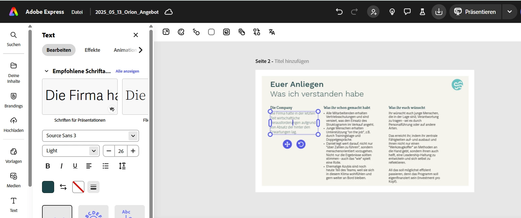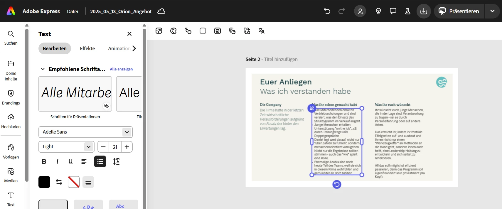 I have a couple of documents in my account in Adobe Express. I duplicated one document and want to adapt it. I have this issue: