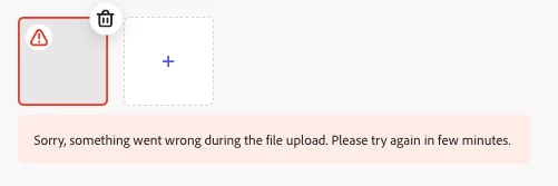 "Sorry, something went wrong during the file upload. Please try again in few minutes."