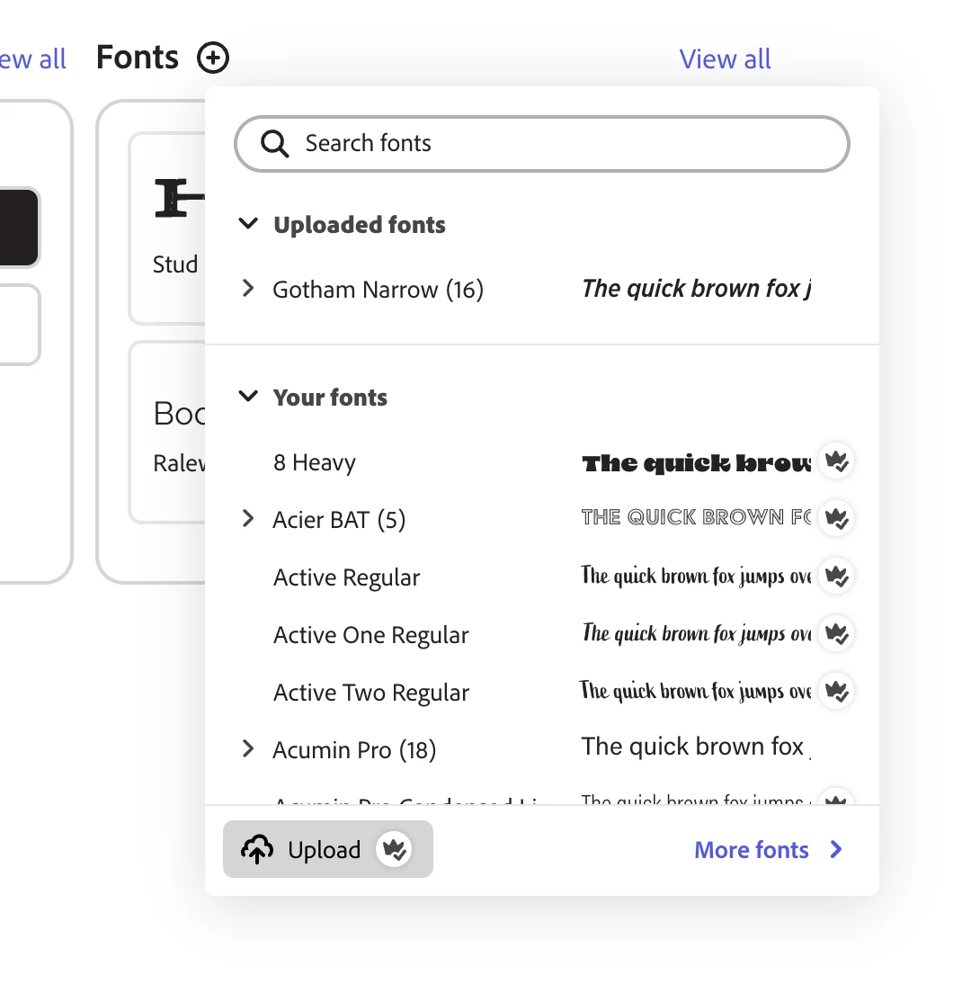 To use custom fonts, you must have a paid enterprise account. You can request access to a custom font from the Admin of the enterprise account, who will then share the custom font with you through the Admin Console.