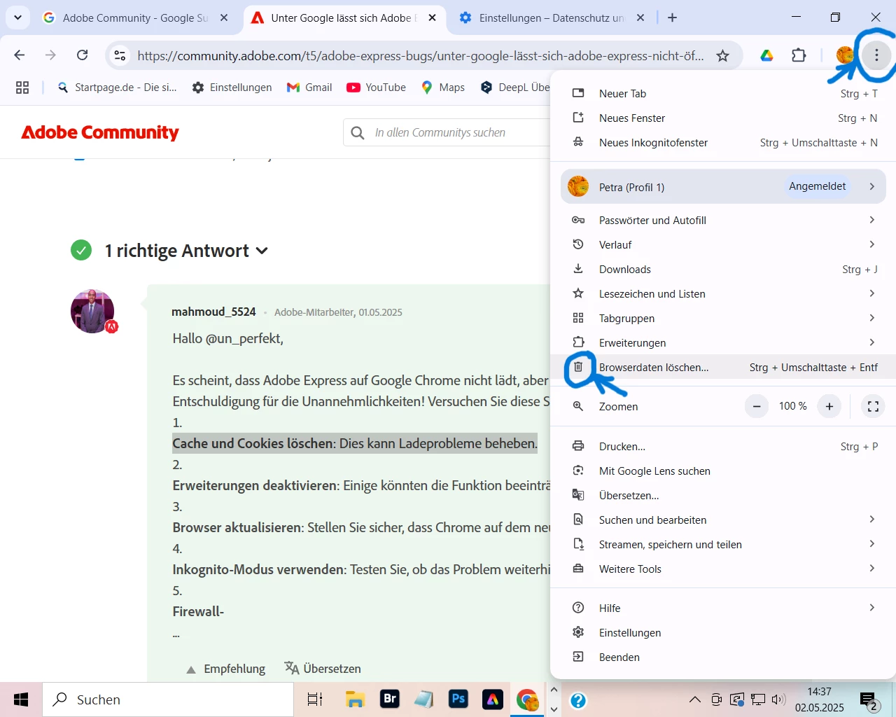 Leider lässt sich Adobe Express nicht unter Google öffnen, es erscheint eine weiße Seite und das war es dann. Mit dem Microsoft Edge lässt sich Adobe Express öffnen. Da ich sehr viel mit Google arbeite, ist es ärgerlich für mich. Woran kann dies liegen?