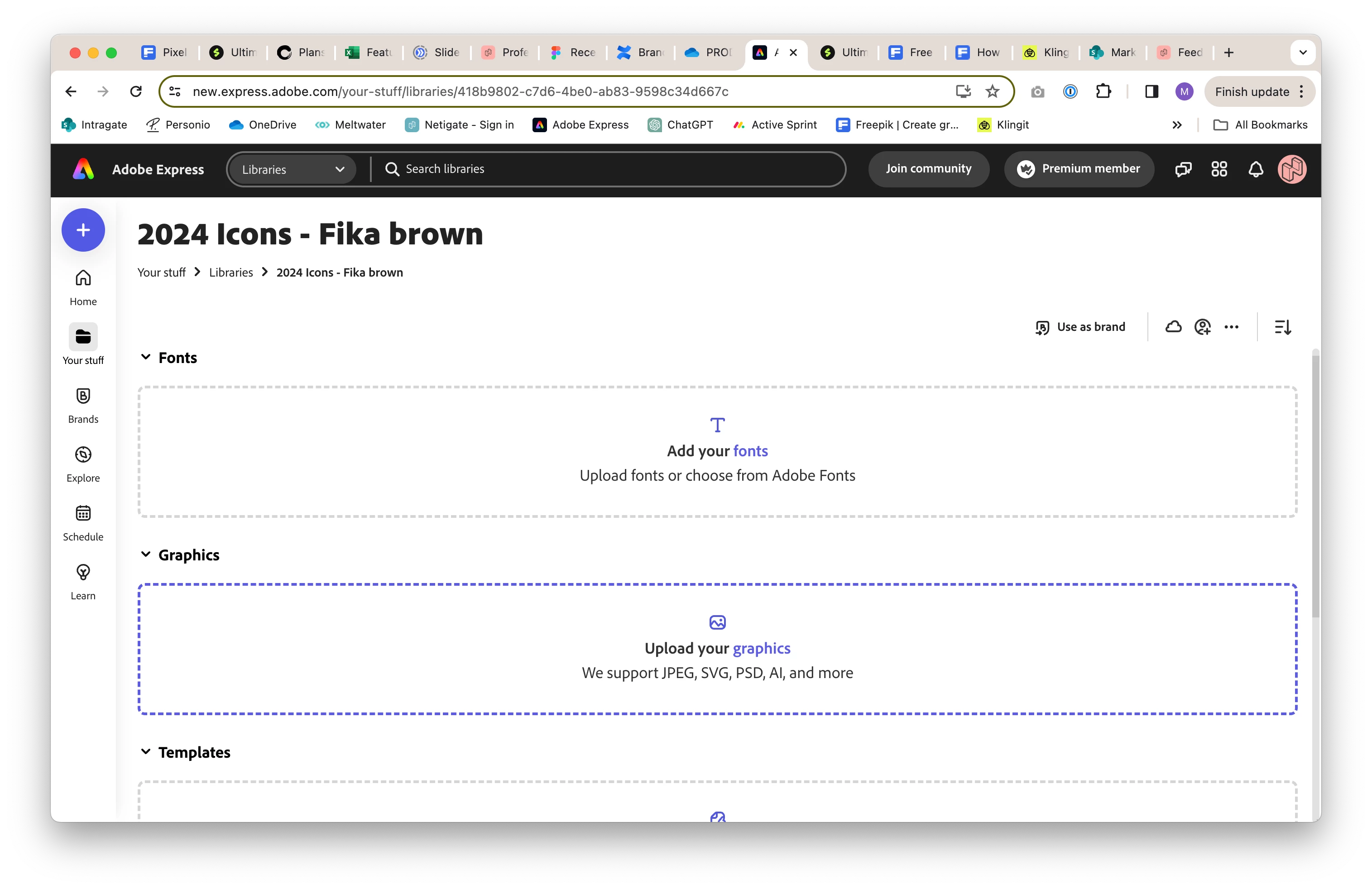 Hi, I cannot upload any Graphics to Libraries anymore. Nor can I upload Assets to my Brands. All other types of resources are still possible to add (like colors and typography). But not graphics. The area is simply not clickable anymore. And it's not possible to drag elements into it either. Please take swift action. As this is quite crucial for continued work in Adobe Express. Sincerely, Martyna Studniarska Director of Brand at Netigate