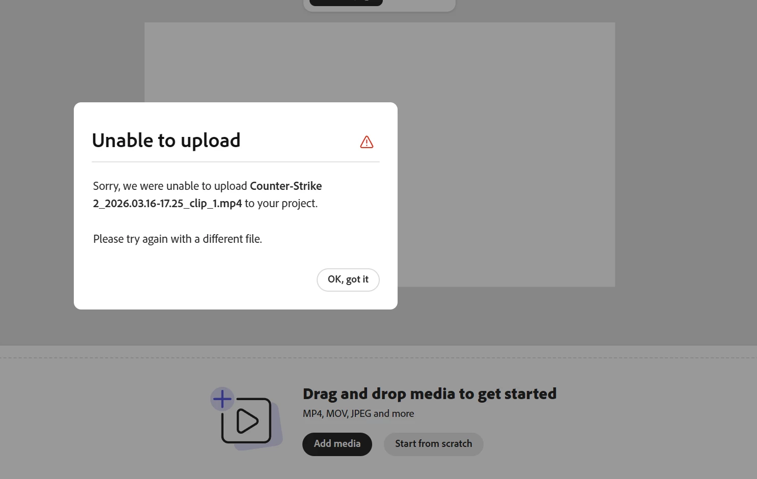 Uploading Mp4 recorded from Radeon ReLive not working on adobe express