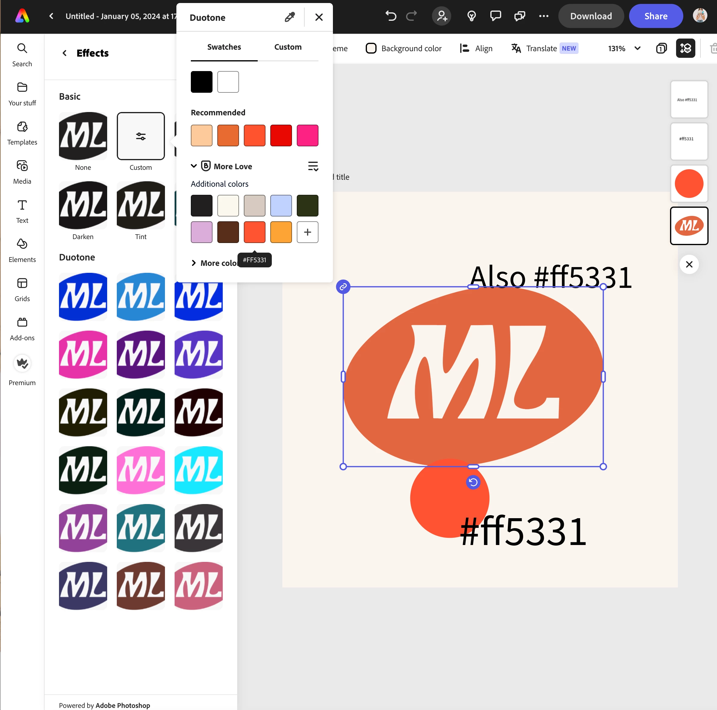 I can't believe this functionality is not native, especially since there's an entire "brand" section to upload logo files. I've had to export all my logo files in all my brand's colours in Illustrator and then manually import them into Adobe Express, one by one since it's not even possible to add several files in the same time... So if I have 5 logo variations and 5 colours in my brand palette, I have to upload 25 individual files and scroll through them whenever I want to use them. So not convenient.