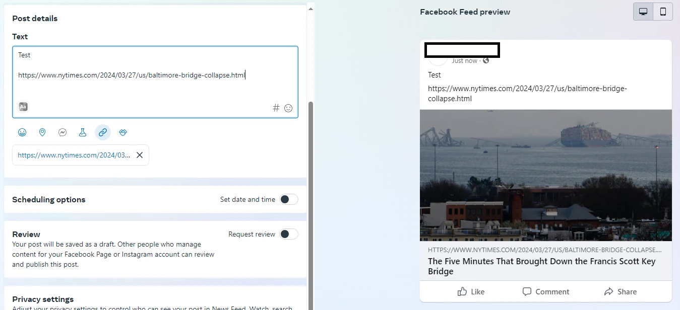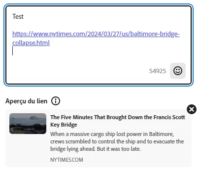 Since the last update, when providing a URL that generates a preview with a title and an image, the preview is removed when we remove the URL from the text. This was not how it worked before, and it's not how most social media platforms operate: it's pointless to have the preview and still have to keep the URL in the text. So, in this specific case (which is the majority of the time), I no longer use the platform because as soon as you remove the URL, it also removes the preview.