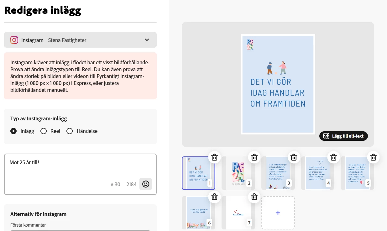 I'm getting an error message when I try to schedule images/carousels for the Instagram feed. It recommends changing the post to 1080 x 1080 instead of 1350, but that seems strange?