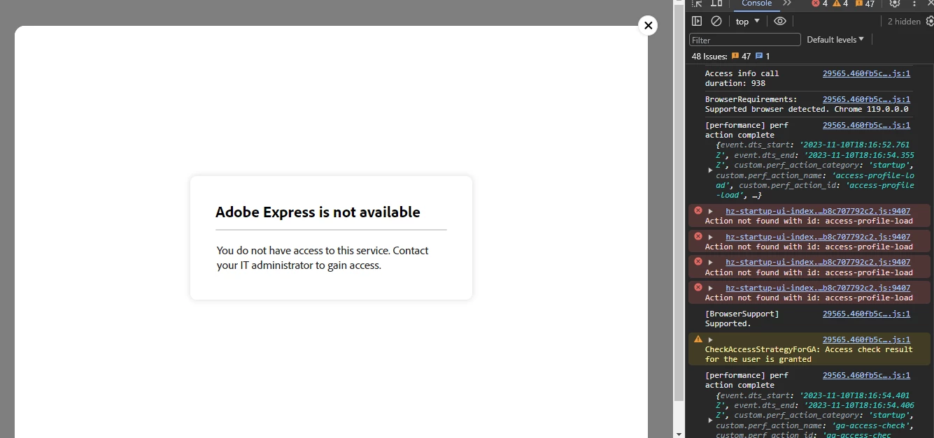 Adobe Express is not available