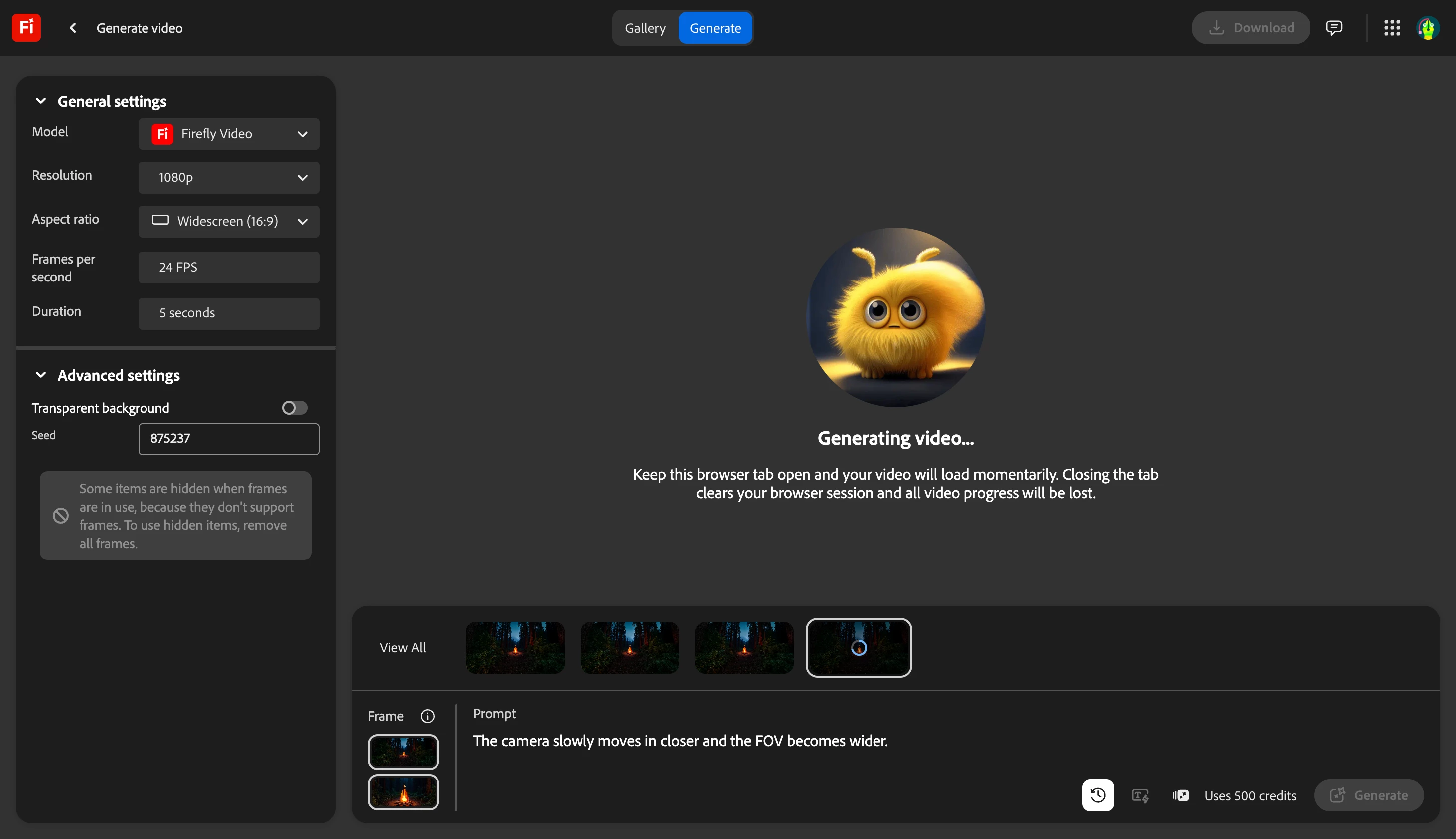 1080p Firefly video did not finish generation even after more than an hour