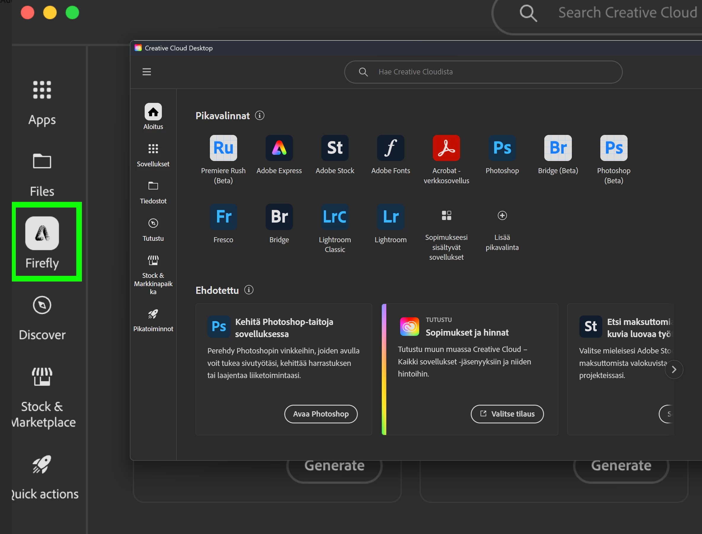 Adobe Firefly icon/quick launch icon/button is missing in creative cloud desktop application.