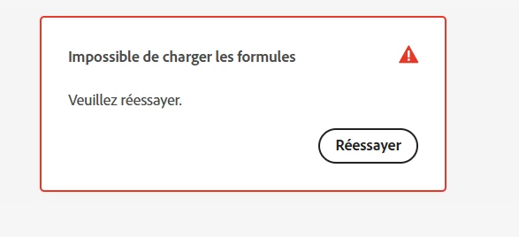 Adobe Firefly ne fonctionne pas j'ai un message d'erreur " impossible de charger les formules" le paiement est ok j'ai vérifier l'argent à été prelevé sur mon compte mais je ne peux acceder à l'outil firefly.