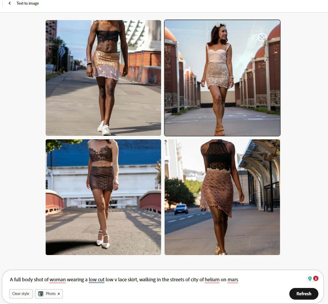 Every single time I request a woman, or female, and if I describe it as such as , a lace skirt, or any other thing like a short skirt whatever it gives me always two or three of the four images of men in dresses. Do you guys have some weird @#$%$#!! for men in dresses or is this a Bug??? If I put the same prompt in any other AI it gives me a beautiful woman dressed in a nice dress, but oh no yours is a muscular ugly man in lace and skirts.