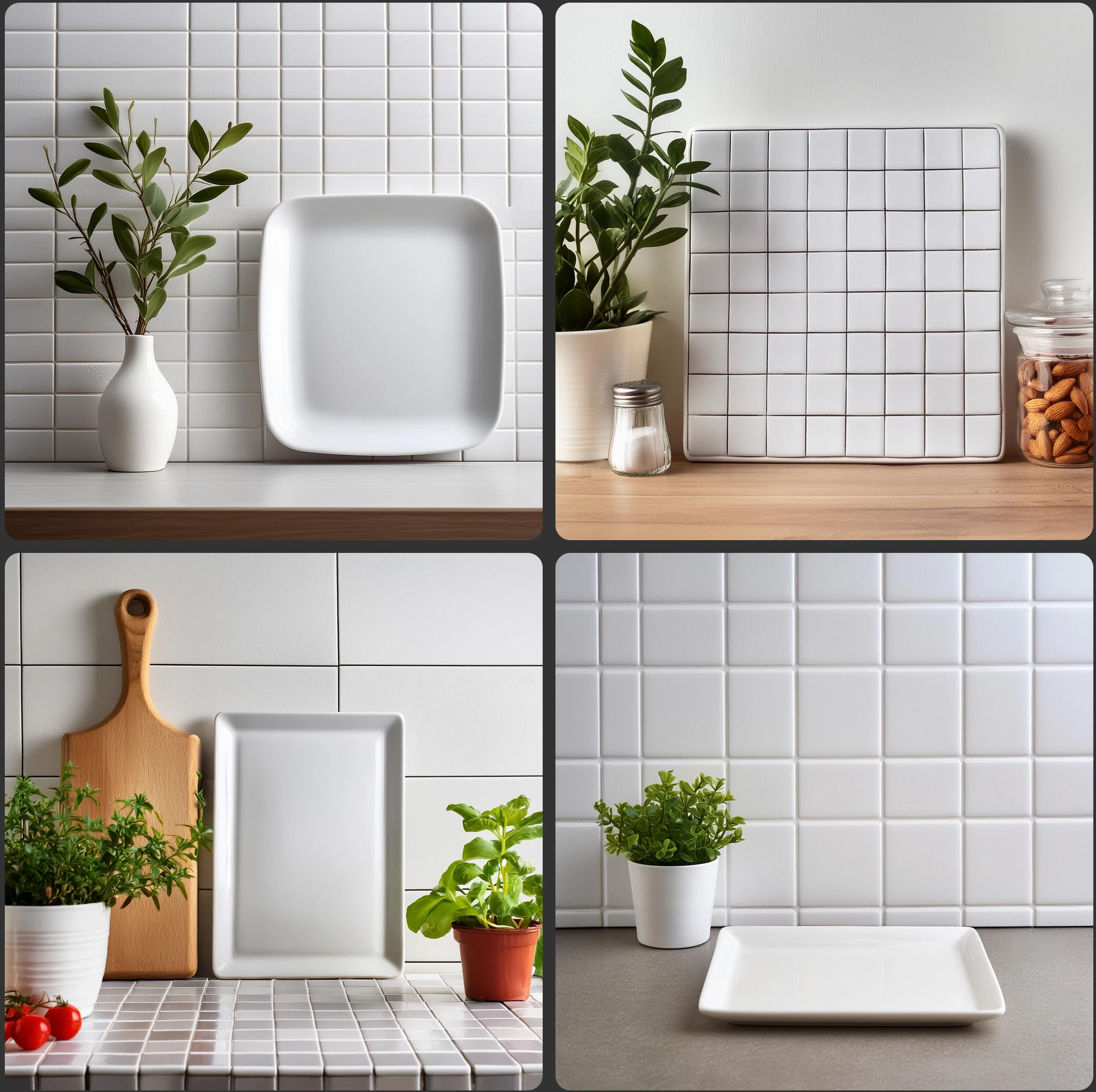 "Create an image of just one white kitchen tile, front view, without humans, without plants, without utensils, without plates and without decoration, without background and without kitchen, just the tile."