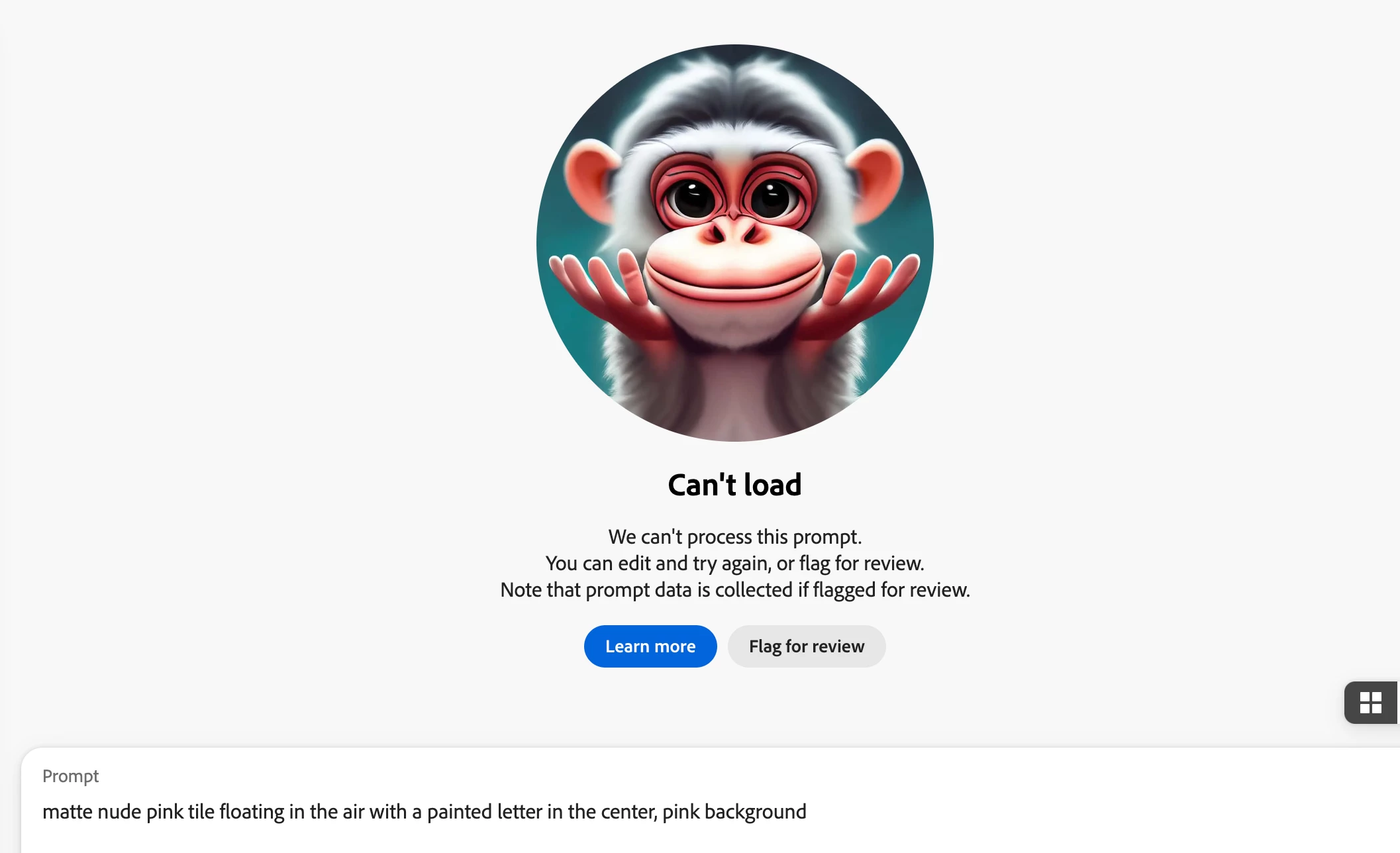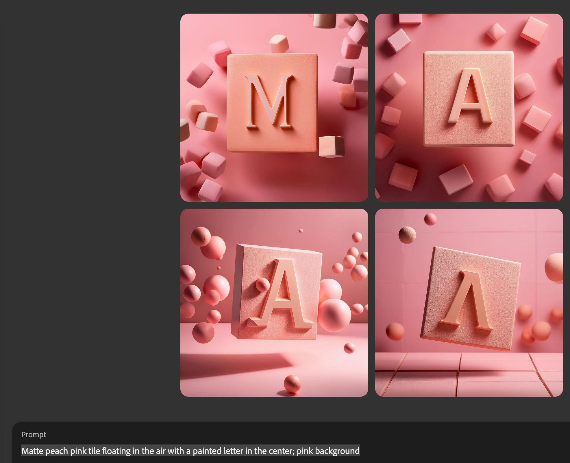 @Julia34680971o66g Its the term "nude" - that term goes against the guidelines. Try this "Matte peach pink tile floating in the air with a painted letter in the center; pink background"