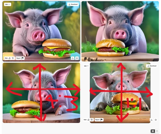 I just created 4 images (text to image) and got the default 1:1 images while I need a 4:3 image. So I selected the one I liked and choose that one to generate similar content after setting the image ratio to 4:3. And I got practically the same image in 4:3 ratio, only I cannot download it in that size. No matter what I try, I keep downloading a 1:1 image. I even tried to open the image in Adobe Express and it still was square, although the canvas in Adobe Express was at 4:3 ratio. This looks like a bug to me.