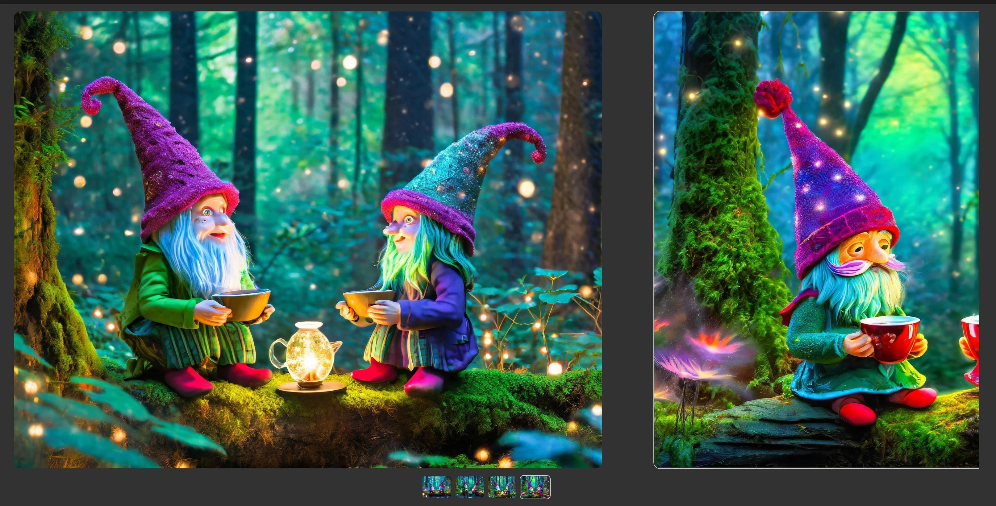 (1) Instead of forcing me to use a different browser (coincidentally, Microsoft has a new partnership with Adobe Firefly), I'd imagine Adobe employs competent engineers who can design it to work on all major browsers. I will not be using MS Edge. (2) No, it does not work if I click the thumbnails at the bottom or scroll. The only way to view the fourth render is double-clicking the partially visible image.