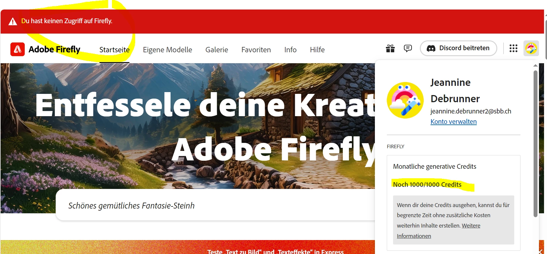 It says I cant use Firefly although I'm logged in and have 1000 credits left. Who can help?