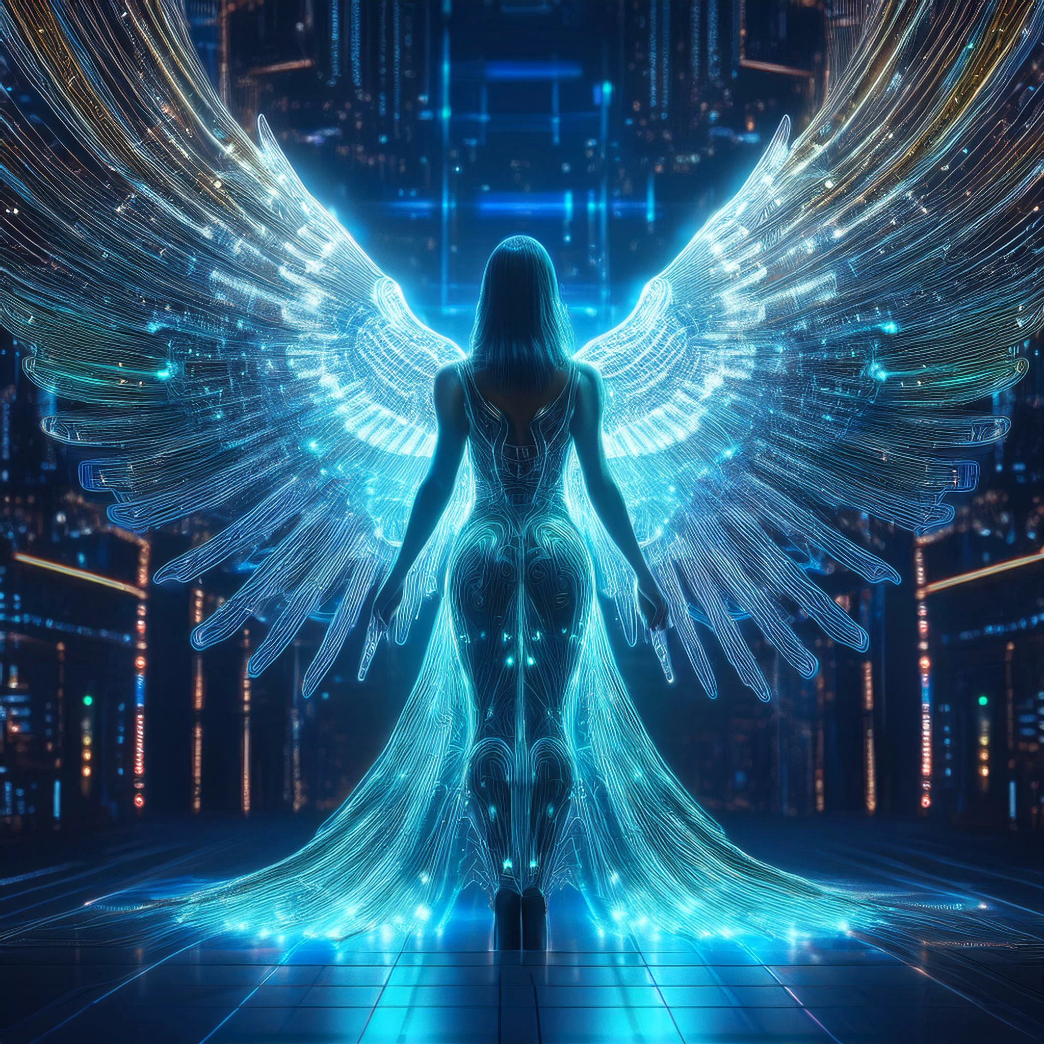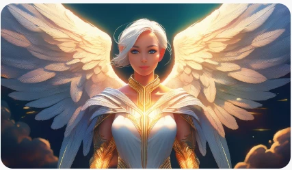 Aqui lo correcto es que las alas esten por atras de la mujer y no por delante