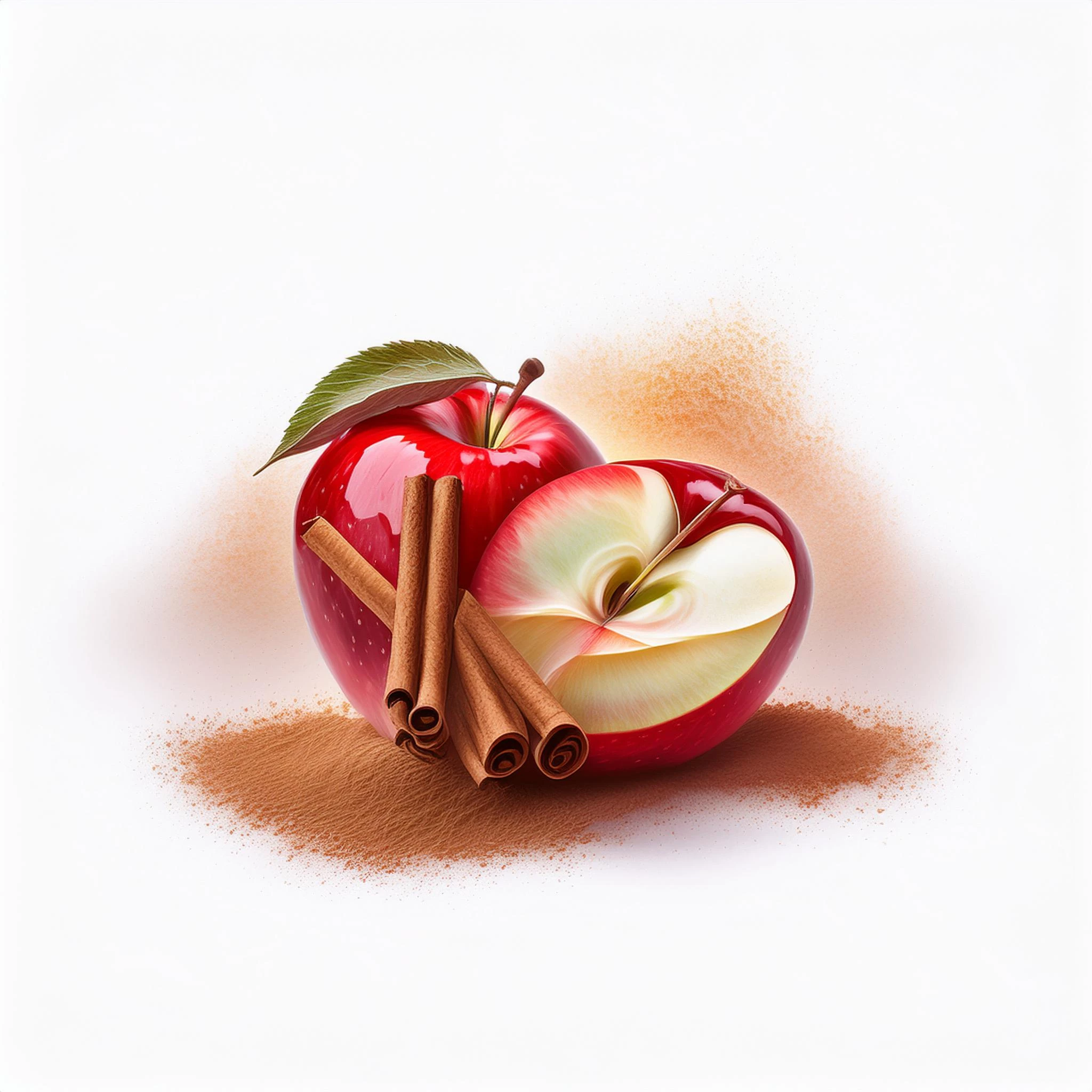 red apple with cinnamon on white background; tasty and healthy snack; isolated
