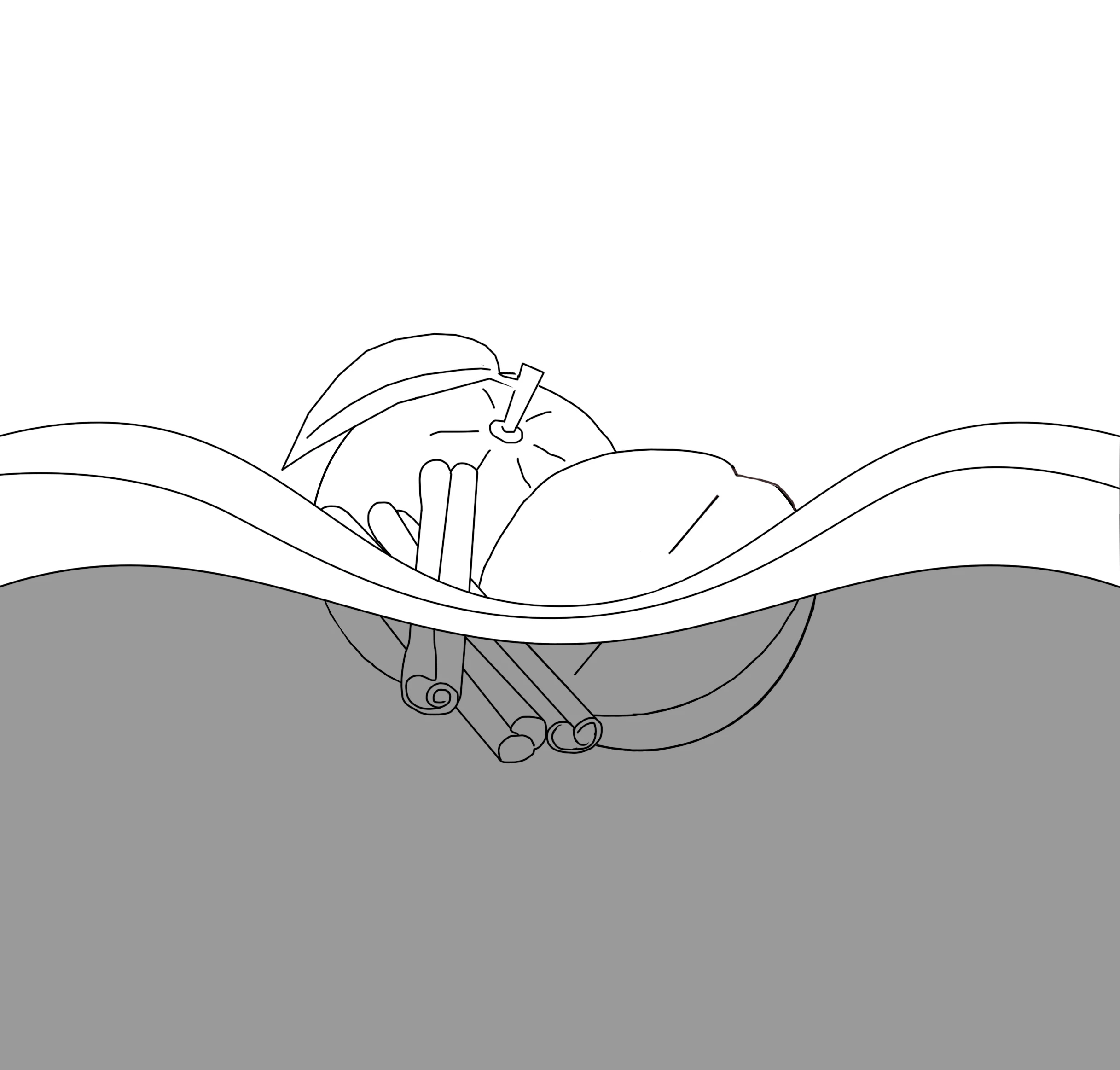 I tried removing various parts. Removing the half apple on the right did not work. But removing the top wavy lines and filling in the apple and cinnamon did work: