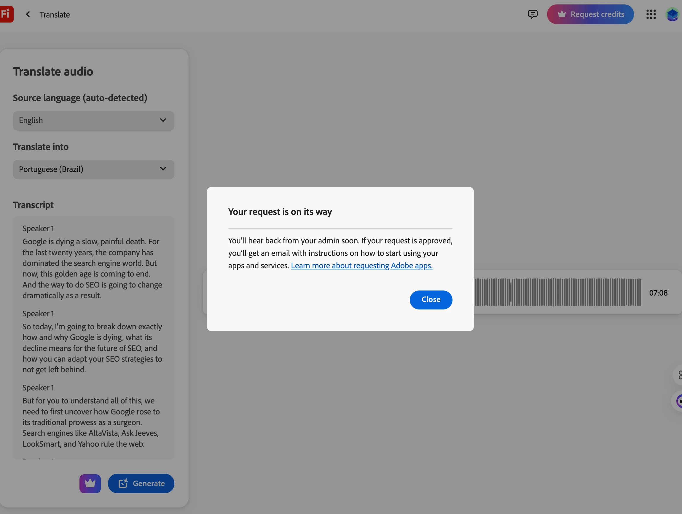Tenho créditos mas não consigo usá-los! Recebo uma mensagem para requerer créditos.