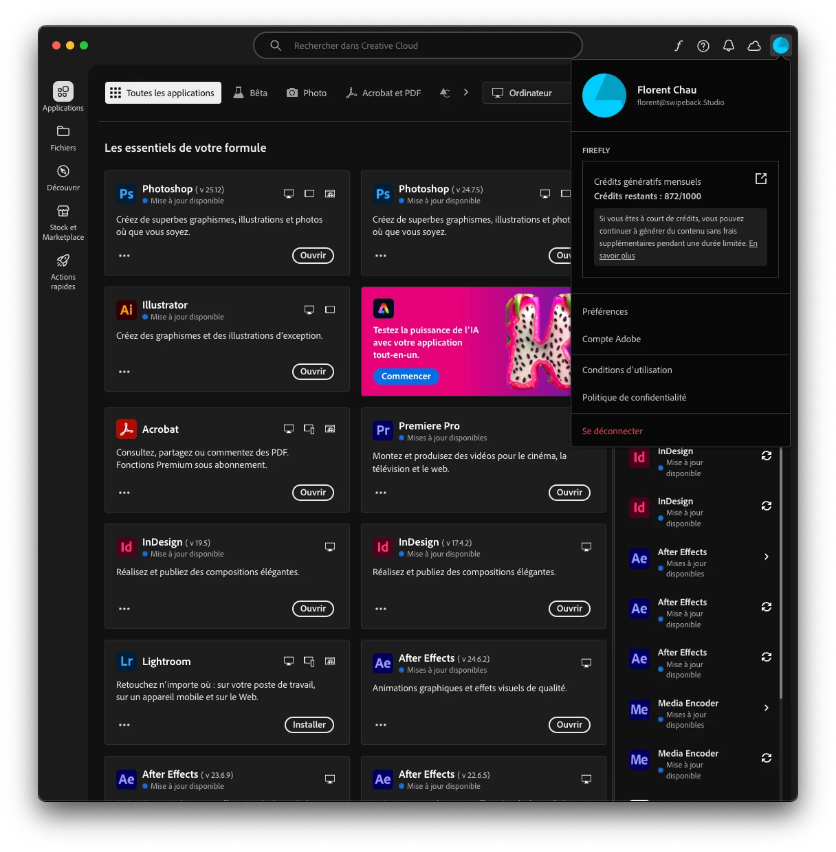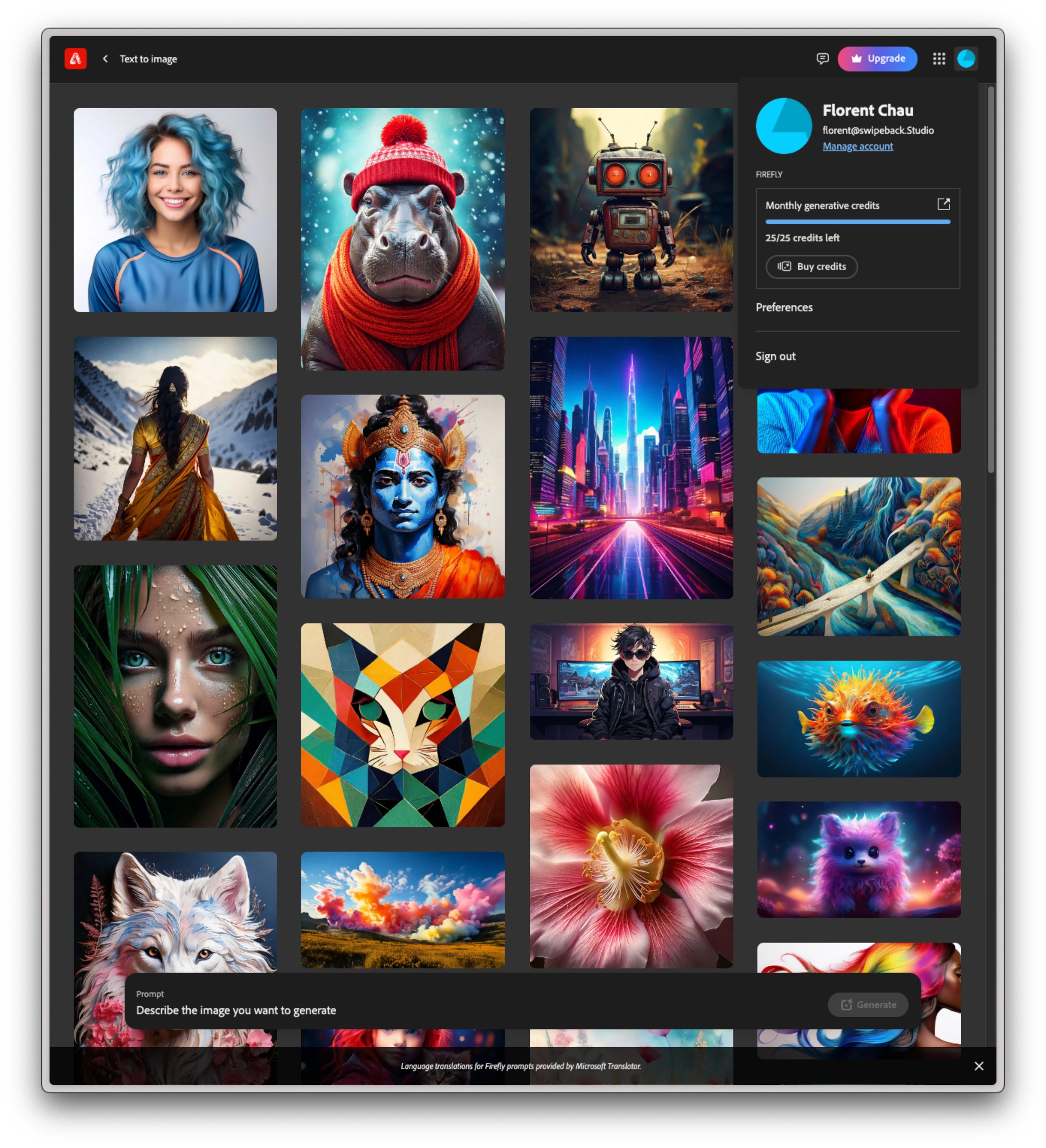 FFlorent26574929uuf2ParticipantForum|Forum|1 year agoOctober 16, 2024Crédits génératifs bloquésForum|Forum|1 year agoOctober 16, 20242 replies249 viewsBonjour, J'ai un problème d'affichage de mes crédits de générations sur le site Adobe Firefly, sur le même compte adobe, il est affiché 25 crédits sur le site firefly, alors que j'ai 872/1000 crédits restants quand je regarde sur l'app Adobe Cloud. Merci pour votre aide.Design