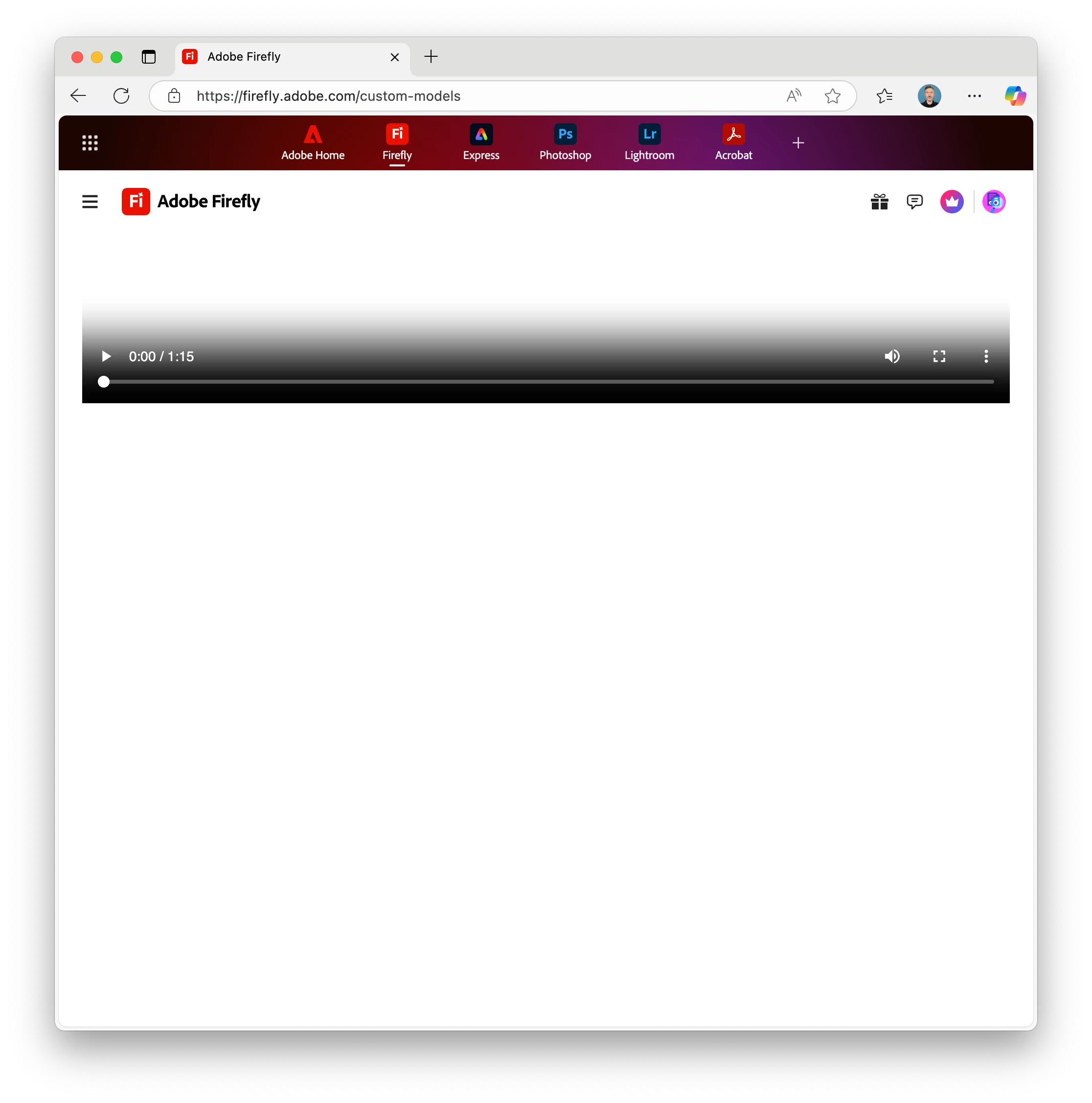 Custom Models page just shows a video