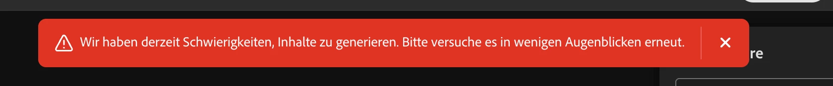 AAvraham35236166amwvParticipantForum|Forum|5 months agoSeptember 8, 2025Difficulties by video generation in fireflyForum|Forum|5 months agoSeptember 8, 20251 reply77 viewsHello,I have been experiencing an error for the last 24 hours, as the system has been struggling with video generation. Red banner every time I try to generate a video. I have a Pro account with Adobe Creative Suite. Best,AlisaAudio and video