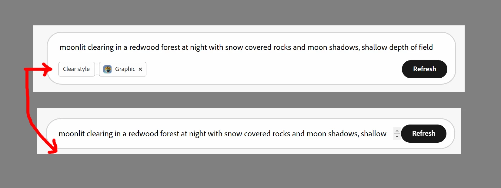 But when you have no style / content type / color etc, that bottom row of style tags (below the prompt text) is not showing, which causes the four image results to resize ever-so slightly (because they have more room on the page and expand).