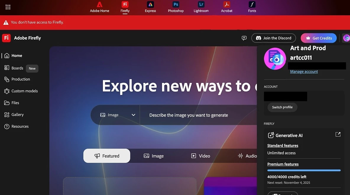 I have credits but when I open firefly appears an warning saying that I don´t have access.