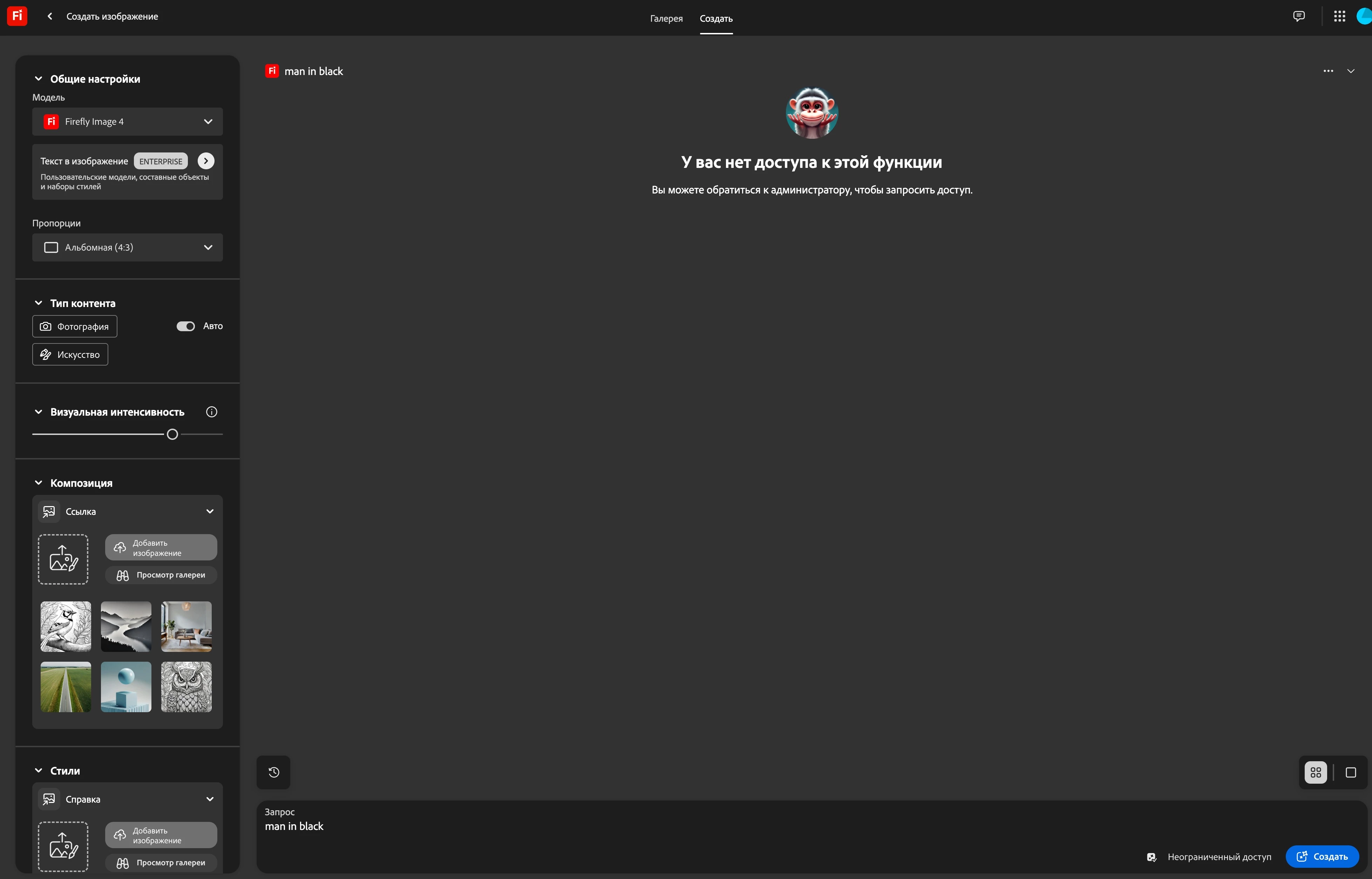 Logs in to the system, but when you write a prompt and click the “generate” button, it says “This function is not available to you” or something like that
