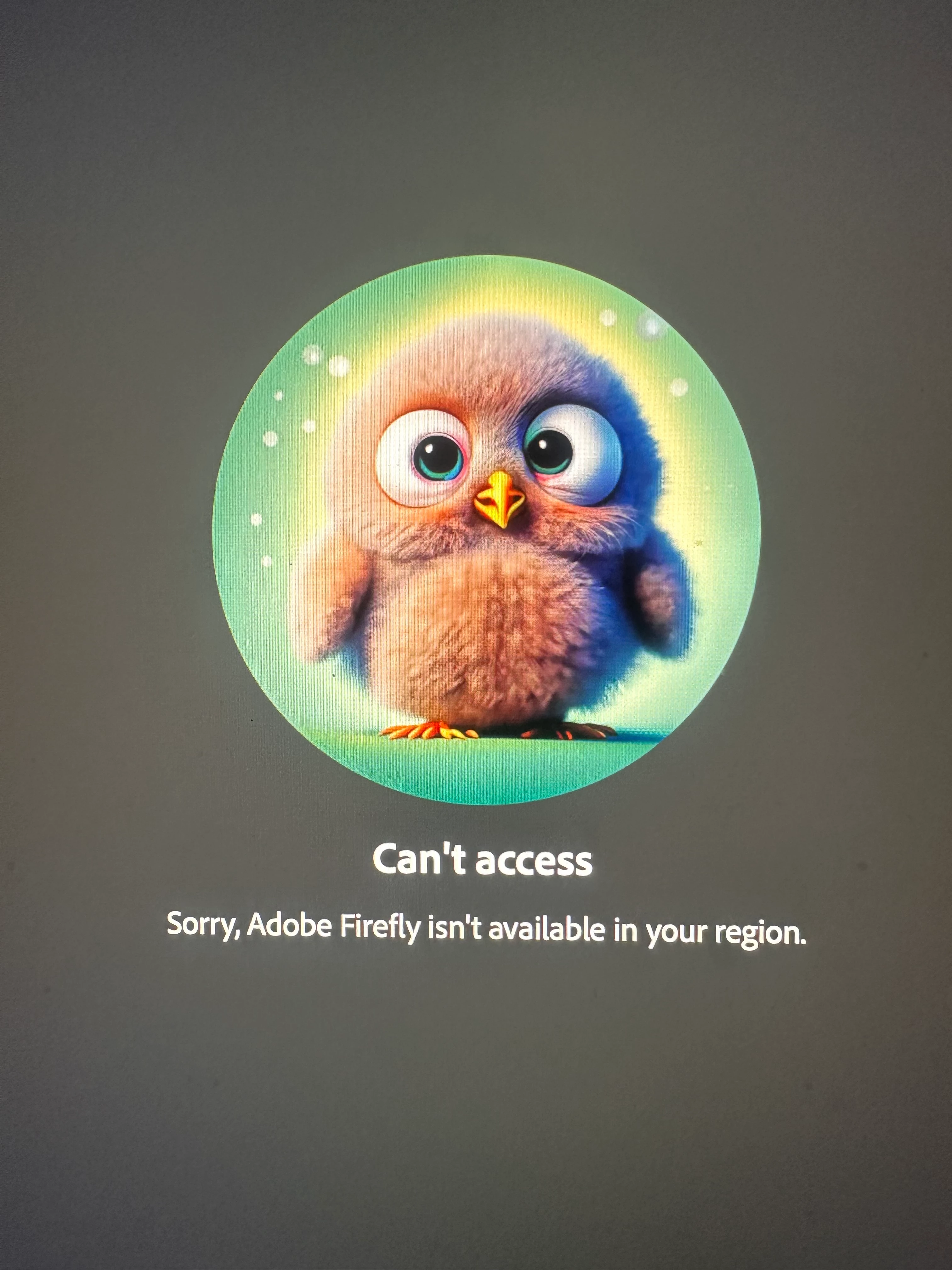 I’m located in Kazakhstan and have an active annual Adobe Firefly subscription that worked perfectly until today. Now I get the message: “Firefly is not available in your region” and can’t use any Firefly features.