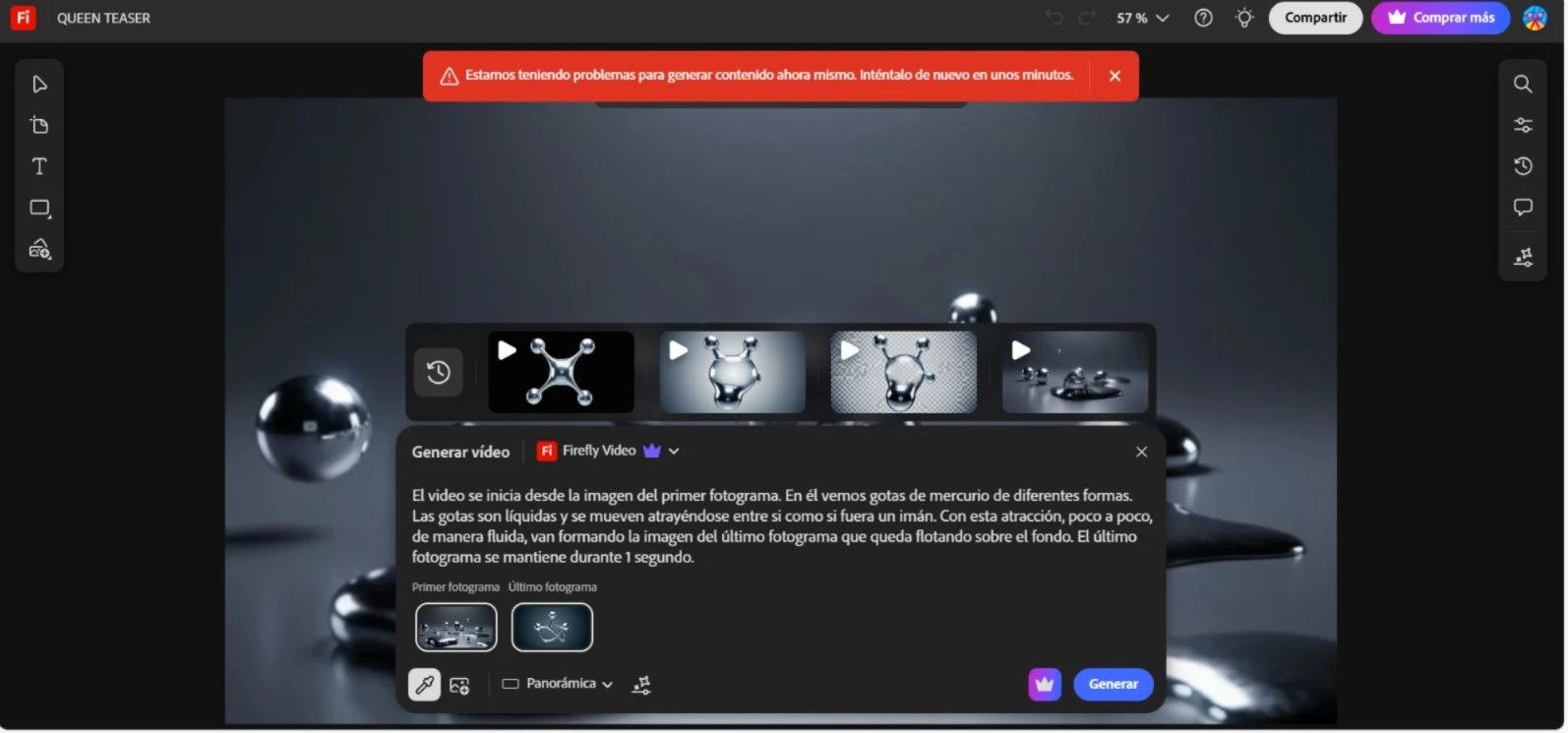 Error al generar video en Firefly