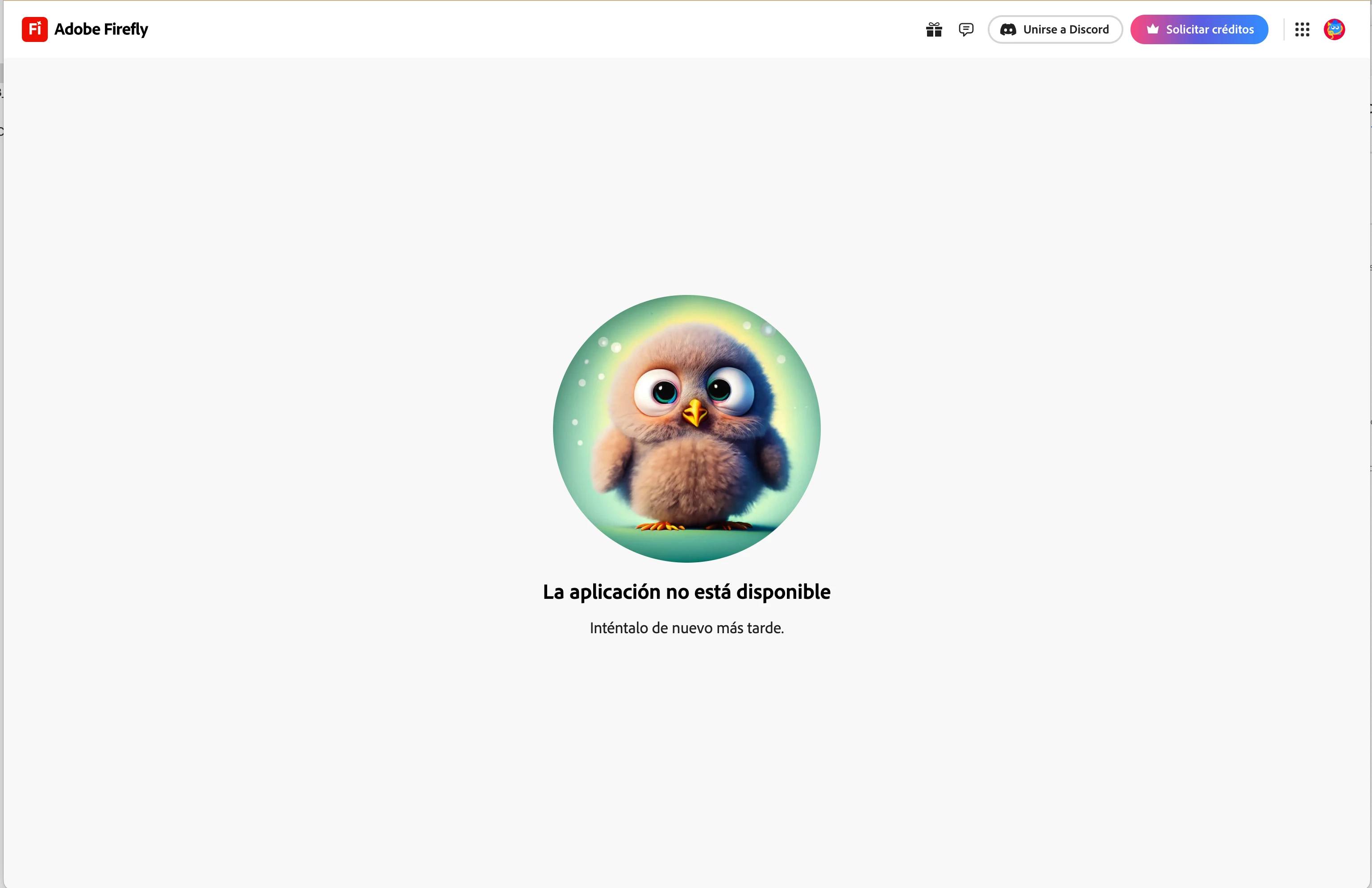 Buenso días, las últimas 2 semanas estoy teniendo problemas con el Firefly para la creación de imagen con texto. Subo unas imagenes de referencia, escribo el prompt, y cuando le doy a "generar" la pantalla se queda en blanco con algún icono superior y poco más. Os adjunto foto de lo que me ha hecho esta mañana.
