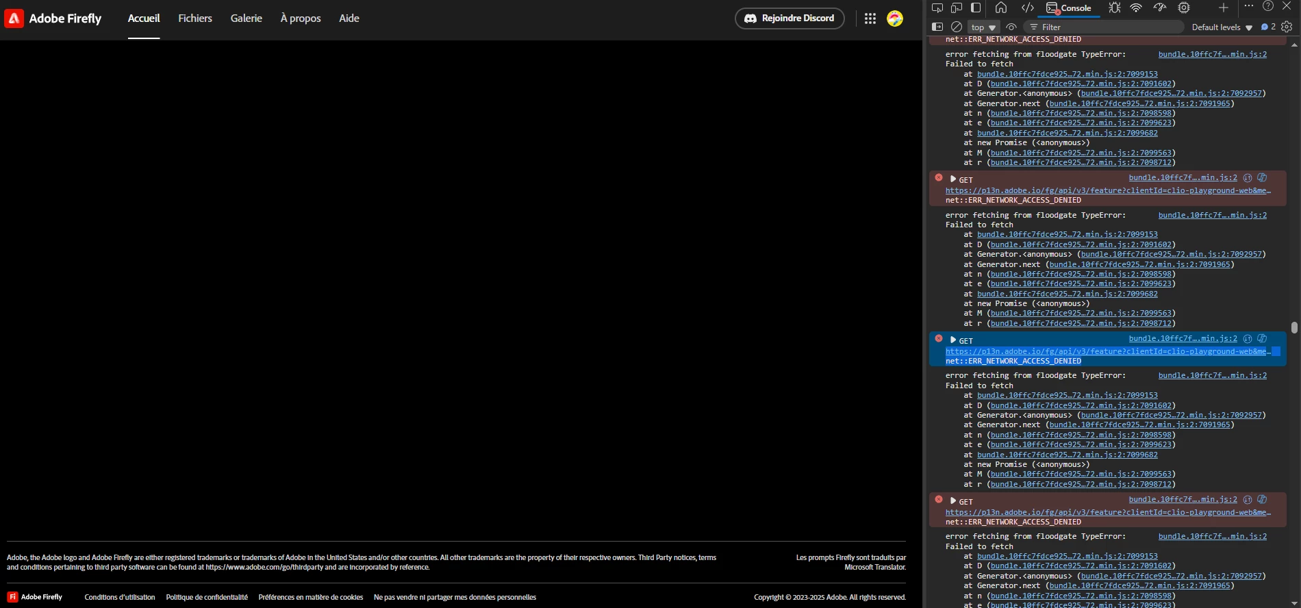 I see this error in dev tools : https://p13n.adobe.io/fg/api/v3/feature?clientId=clio-playground-web&meta=true&clioPreferredLocale=fr_FR net::ERR_NETWORK_ACCESS_DENIED