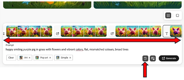 You can then scroll the history bar left and right and select the generations you want to see again. But this is only the current session and is not permanent storage.