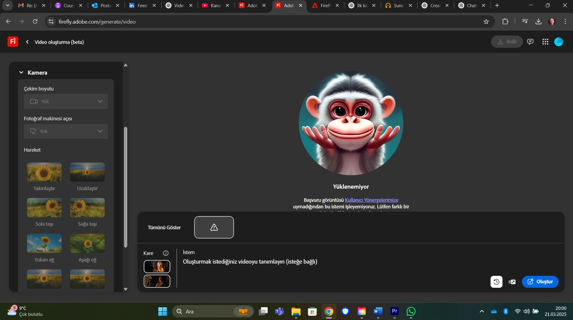 I recently started using Firefly, and although I suspect this might be an error on my part, I still needed to report it. Here’s the issue: whenever I try to create a video, a message appears stating that I have accepted the Terms of Use. When I click on the blue “Terms of Use” text, I receive a “page cannot be found” warning. Even when I click “I accept,” my video does not upload. As I understand it, there is some form of protection regarding the copyright of the images used. To overcome this problem, I created my latest images with Firefly, yet I still encounter the same error. Could you please resolve this issue? Thank you in advance.