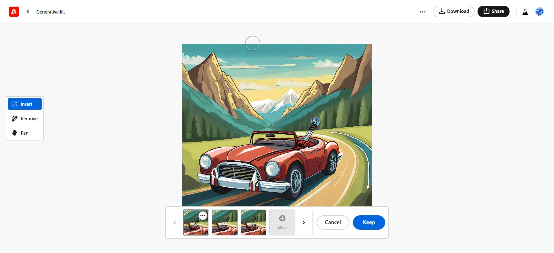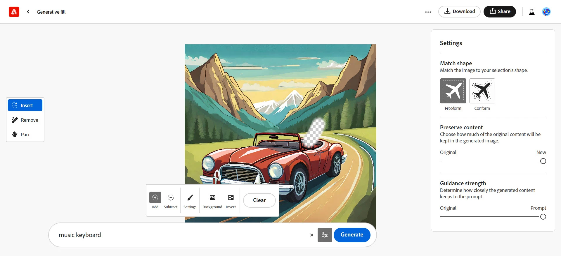I'm trying to add a synthesizer to an image in generative fill but it keeps creating an electric guitar. I also tried the words musical keyboard but again it keeps creating an electric guitar.