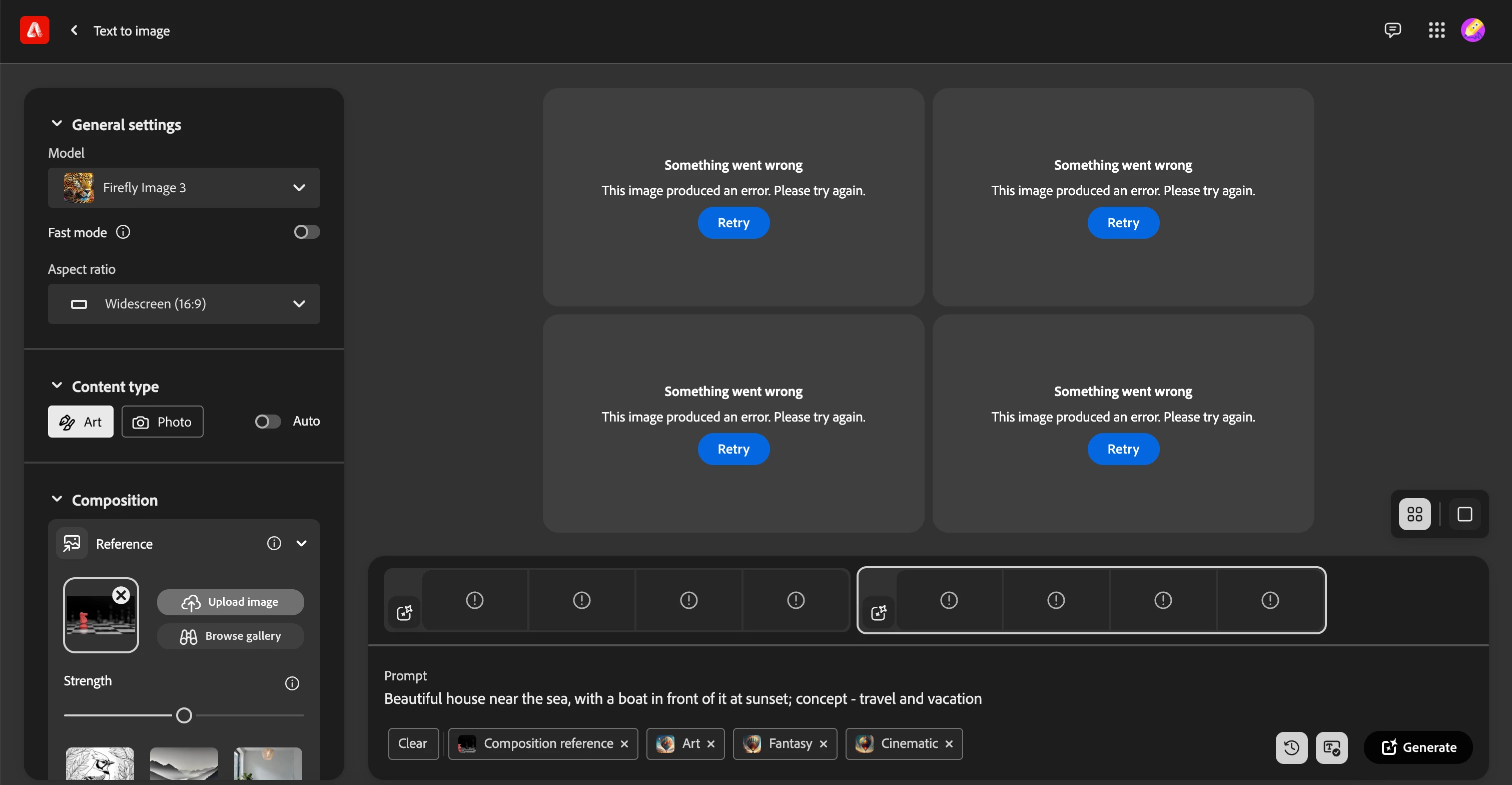 I hope you can help me. I can't get Generate to work within Photoshop/Illustrator. The loading starts, but then the variants are all black in the layers section. The same happens with Firefly; it starts loading, but after finishing, it doesn't return the images. I have checked that I have a good internet connection and updated all applications to the latest version. I leave here un example