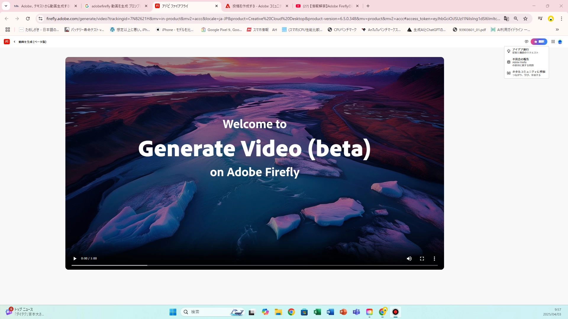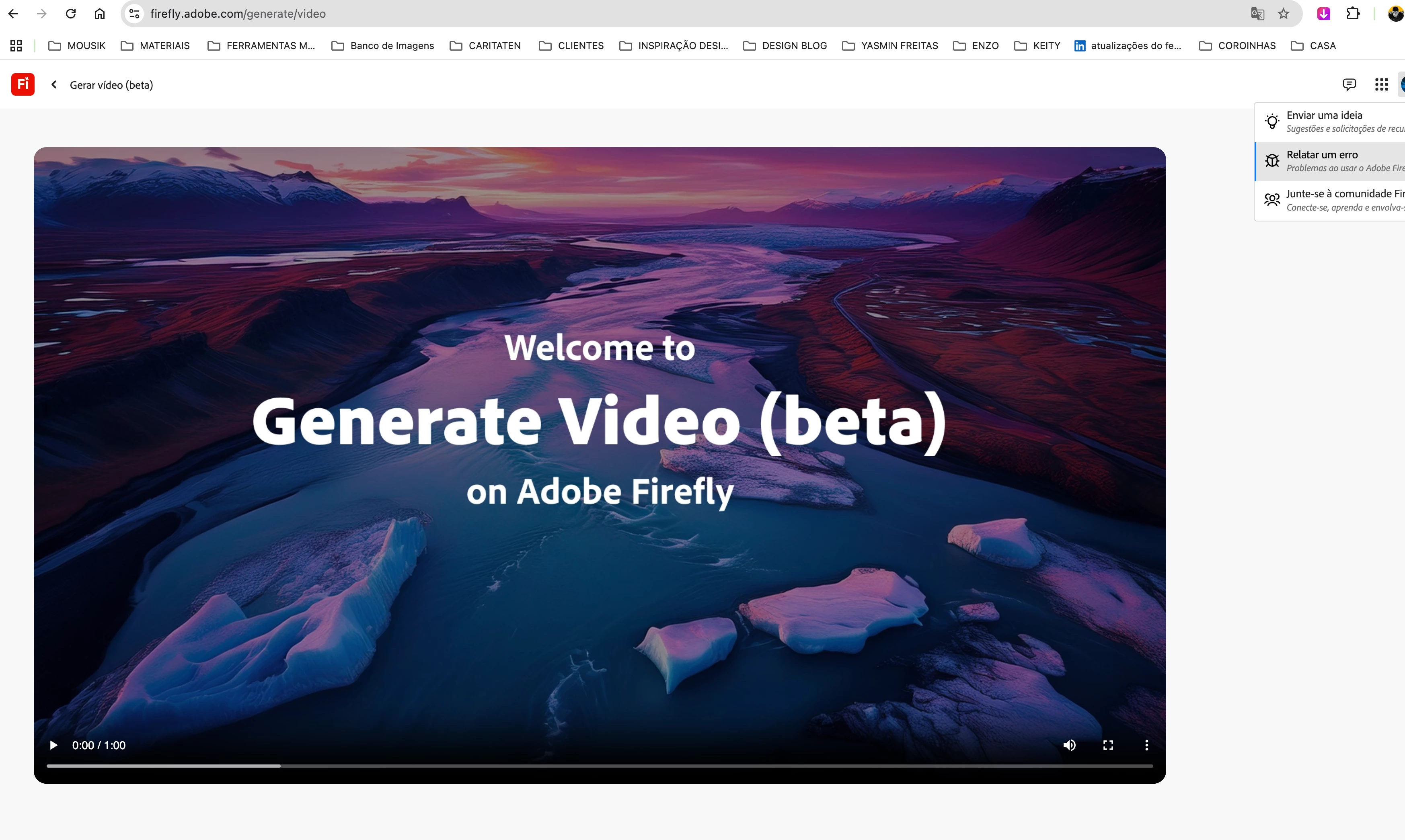 Acesso a aba de geração de vídeo, abre apenas uma página com um vídeo institucional, e não vai para a aba de criação generativa