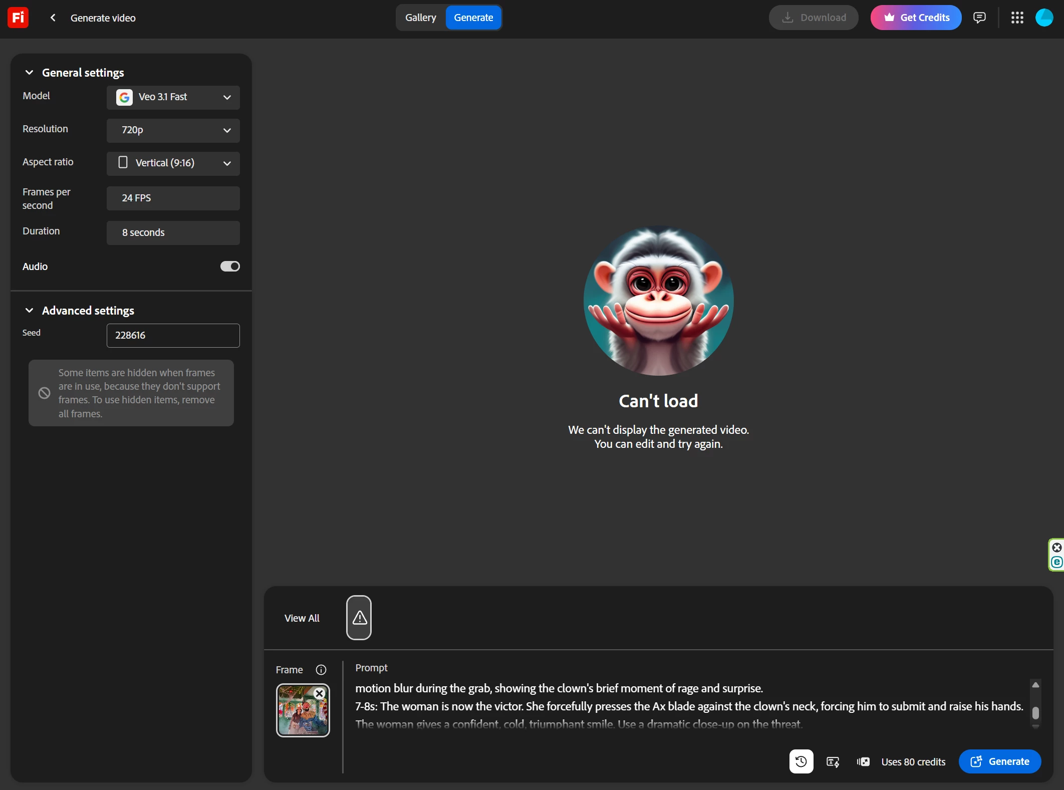 Quite simply does not work. "Can't load. We can't display the generated video. You can edit and try again." Do I get a reduction in my susbcription cost because I am forced to pay for AI features that dont work?